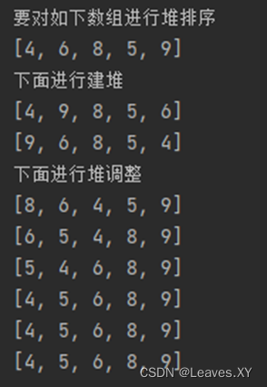 例:数组 {4,6,8,5,9} , 要求使用堆排序法,将数组升序排序。