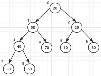 假设待排序数组为[20,50,10,30,70,20,80]