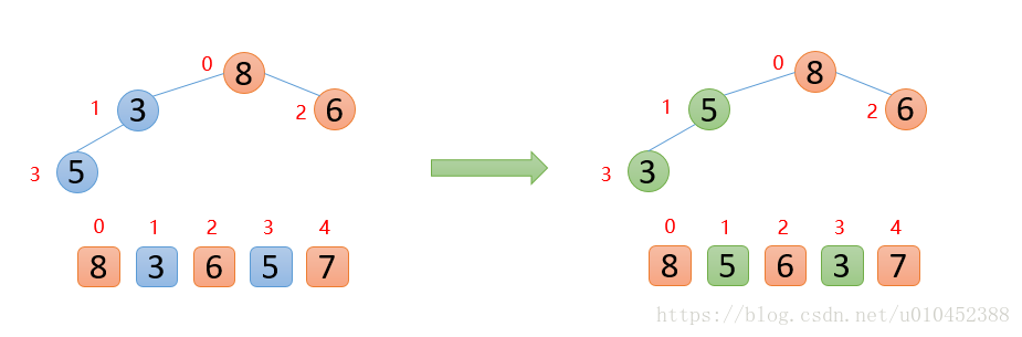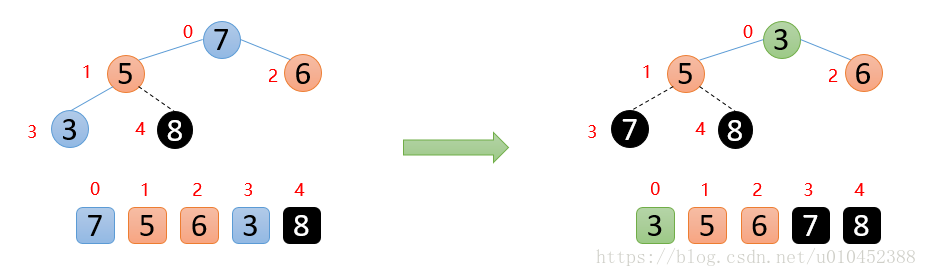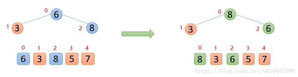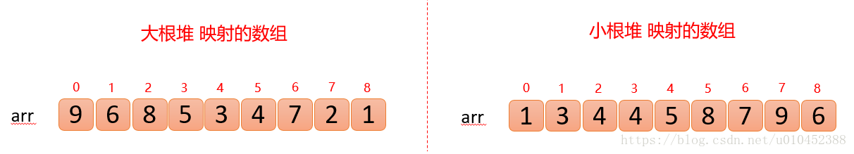 所以上面两个数组可以脑补成堆结构,因为他们满足堆的定义性质: