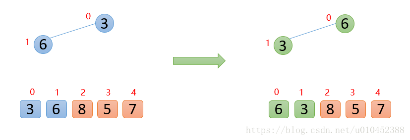 (友情提示:待交换的数为蓝色,交换后的数为绿色)