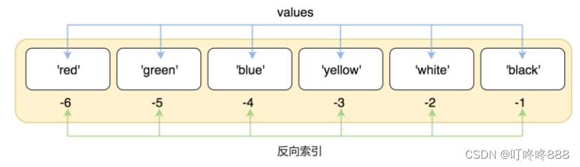 索引也能从尾部开始,最后1个元素的索引为 -1,往前一位为 -2,以此类推。