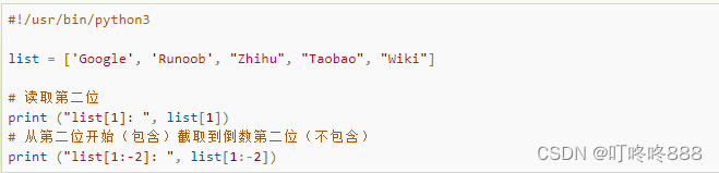 list[1]: Runoob list[1:-2]: ['Runoob', 'Zhihu']