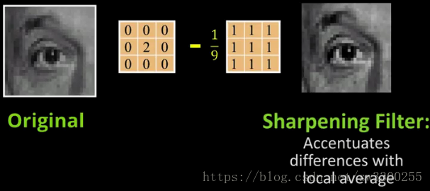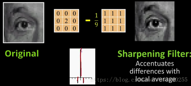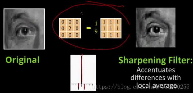 画个像这样的东西,这里叫做锐化滤波器,这些红色的小部分和红色的中间部分有关。