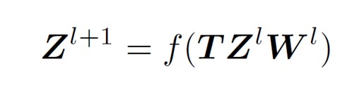 T是信息变换矩阵,是通过邻接矩阵变换得来,大小N*N,w是节点向量维度变换矩阵