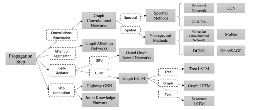不同的文献对图神经网络有不一样的分类,不过基本都是根据各自的特性来进行分类的