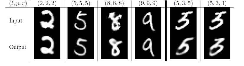 - 重构出来的图像形状和位置和输入极其类似,这是说明胶囊网络起了作用,Capsule的确包含了物体的多个信息:特征、位置、大小等等。