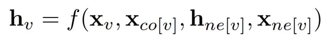 - 在图中,每个节点的定义是由该节点的特征和相关节点来共同表示的。GNN的目标是训练出state embedding函数hv,该函数包含了每个节点的邻域信息