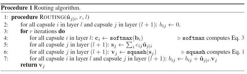 层级胶囊路由的伪代码