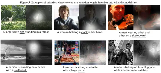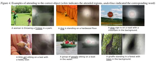 这两种方法都使用了一种泛化的手段,使得描述跟图片很接近,但又不是很准确。所以作者在此基础上提出了自己的模型架构,将soft 和hard attention引入到caption,并利用可视化手段理解attention机制的效果。