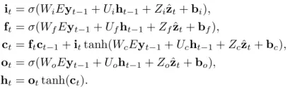 LSTM模型结构如下,对应输入门、输出门、忘记门数学公式如下: