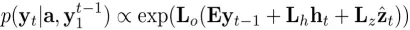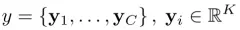 Decoder,解码阶段用LSTM网络生成caption,集合为下式,其中C是句子长度,K是词表大小,y是各个词的one-hot编码所构成的集合。
