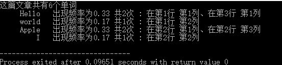 要求:任给一个英文文本文件,统计该文本的所有单词(不区分大小写),包括其出现的总次数,频度,以及出现的行号和位置