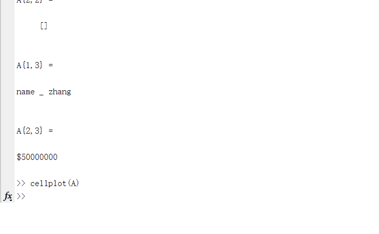 输入cellplot(名称),用图形显示单元数组的结构图。