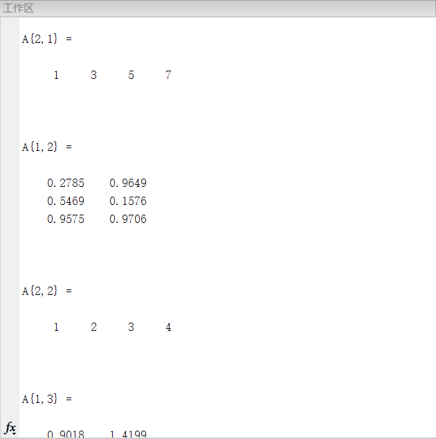 2))单元索引【推荐】:将单元数组的单元号用花括号括起来,在等式右侧写入单元的内容