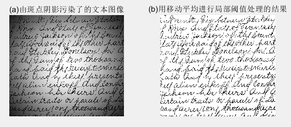 - 使用im2bw和graythreshi把图像变换为二值图像,图 (a)显示了结果。