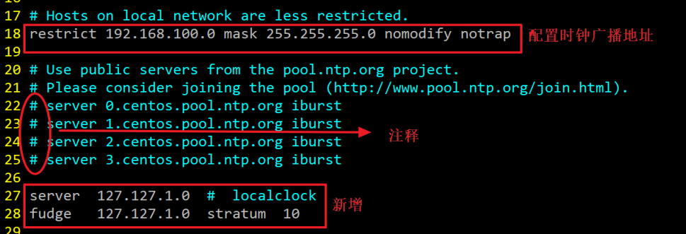restrict 192.168.100.0 mask 255.255.255.0 nomodify notrap server 127.127.1.0 # localclock fudge 127.127.1.0 stratum 10