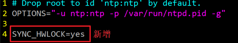 3、修改第二个配置文件 vi /etc/sysconfig/ntpd