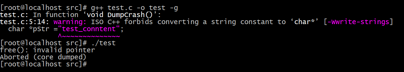 localhost@localhost:~/C++/testcore$ gdb test core