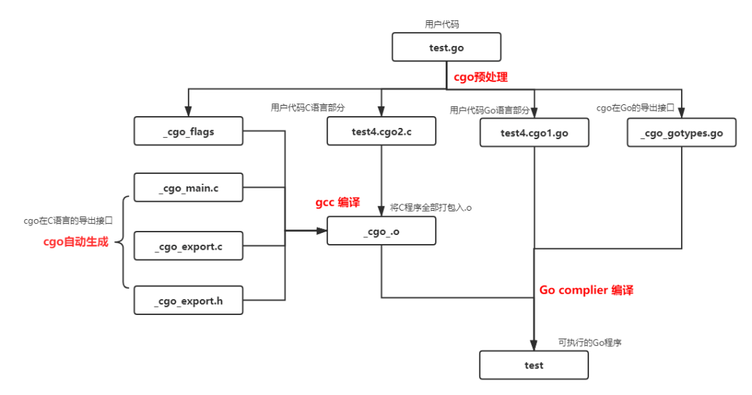 当你在包中引用 import “C”,go build 就会做很多额外的工作来构建你的代码,构建就不仅仅是向go tool compile 传递一堆.go文件了,而是要先进行以下步骤: