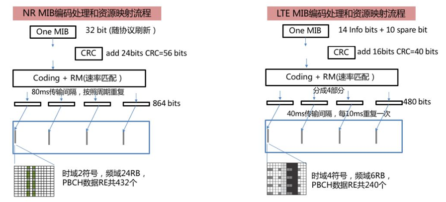 3.4 LTE与NR的物理广播信道PBCH参数的对比