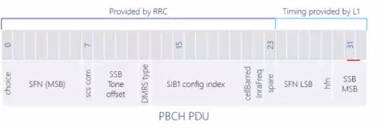 - SSB MSB[29: 31]:3bit的波束标识号, 用于与DMRS的8种序列(3bits),标识64个不同的波束。