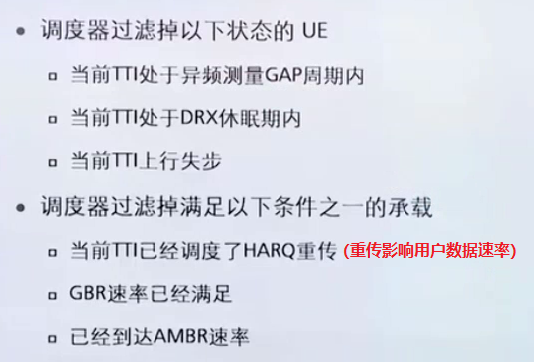 备注:GBR速率满足和AMBR速率满足,都表示这些用户的速率以及满足,在该TTI周期内不需要再调度他们。把资源留给其他用户。