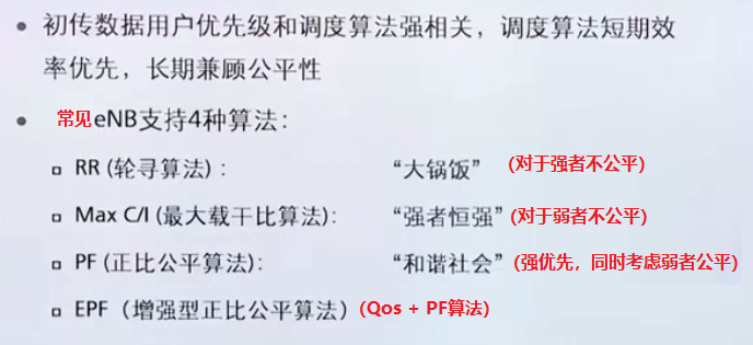 (4)业务数据:用户不同的业务数据的优先级不同:GBR > None GBR
