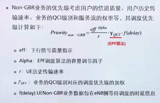 下面先以GBR与Non-GBR业务进一步参数EPF增强型正比公平调度算法。