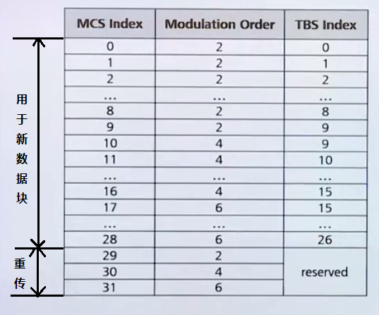 MCS将所关注的影响通讯速率的因素作为表的列,将MCS索引作为行,形成一张速率表。