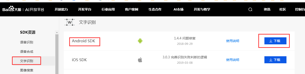 SDK下载:https://ai.baidu.com/sdk/#ocr