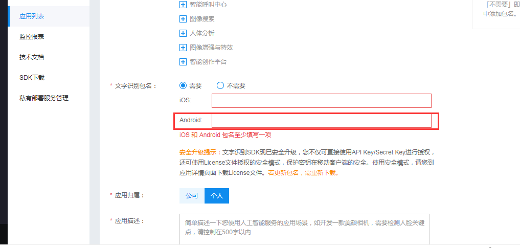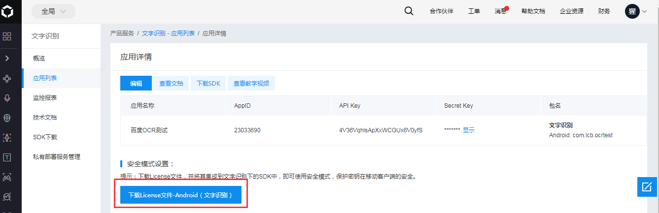 以上就是风中黄豆最近收集整理的关于百度文字识别申请与下载一.官网申请二.SDK下载和说明三.错误283604的全部内容,更多相关百度文字识别申请与下载一内容请搜索靠谱客的其他文章。