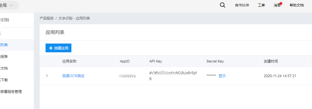 申请链接:https://console.bce.baidu.com/ai/?fromai=1&_=1488766023093#/ai/ocr/app/list