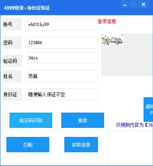 识别到内容 = 验证码识别 (图片, 取字节集长度 (图片))