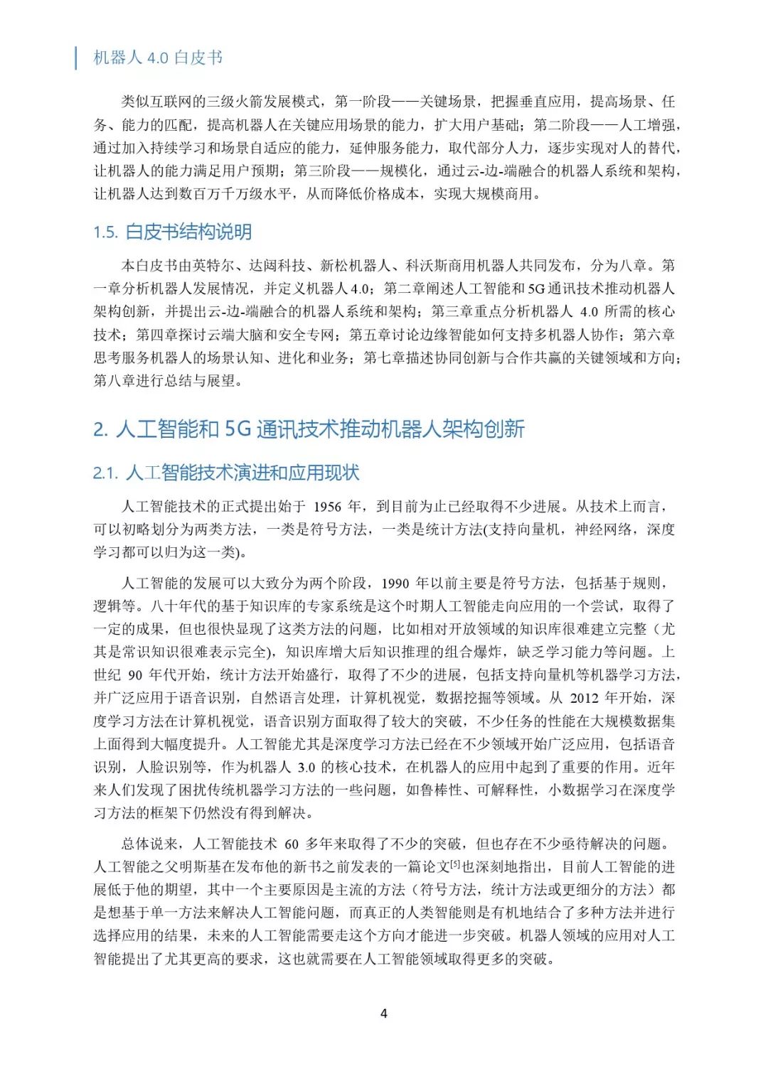 近日,英特尔、达闼科技、新松机器人、科沃斯商用机器人联合发布《机器人 4.0 白皮书 ——云-边-端融合的机器人系统和架构》。