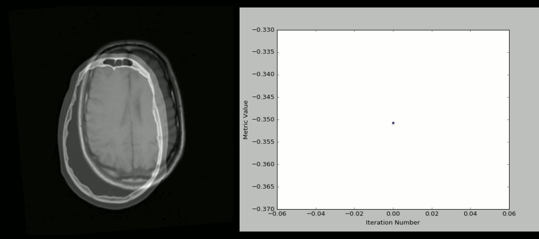下面的动画是用SimpleITK和Python创建的刚性CT/MR匹配过程的可视化 。下面是源码: