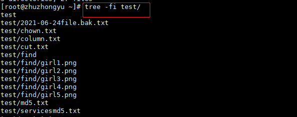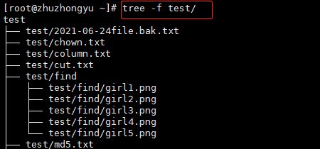 备注:如果直接执行 tree 不带任何参数和目录,默认显示当前所在路径的目录结构。