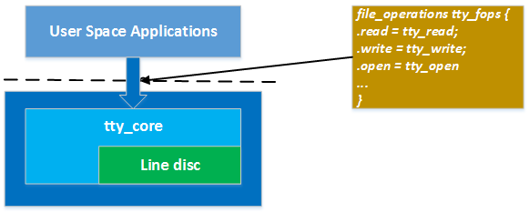 OK,既然找到了设备节点,那么应用层便可以通过打开设备节点,并对串口做一些配置、读写的操作;这里用户空间的任何 open、write、read 等操作,直接对应到了 tty 层的注册到字符设备的这些 file_operation;整个调用流程的 operation 比较多,这里我们先整理一下,以便清晰的向前进!