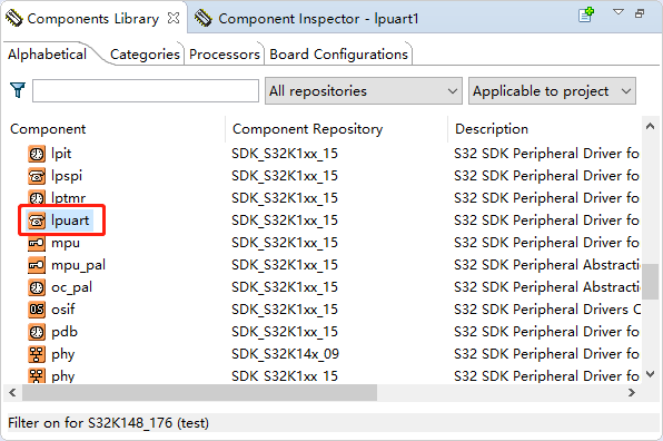 使用NXP S32K148EVB的官方开发板,UART1引脚RX-PTC6 TX-PTC7。
