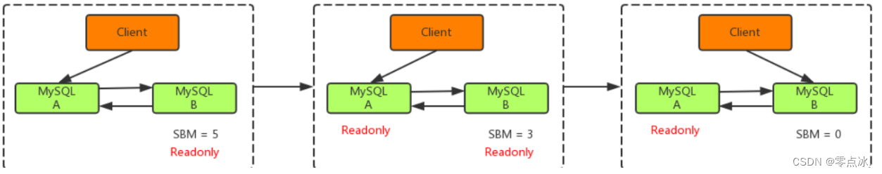 - 判断从库B的Seconds_Behind_Master值,当小于某个值才继续下一步