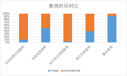 不同的测试用例查询时间对比:以50%为分割线,占比少的说明效率高。用性能测试采集到的最优的性能数据来对比。