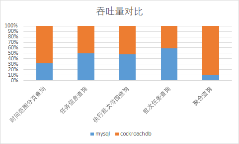 吞吐量对比:以50%为分割线,占比多的说明吞吐量高。用性能测试采集到的最优的性能数据来对比。
