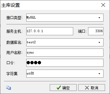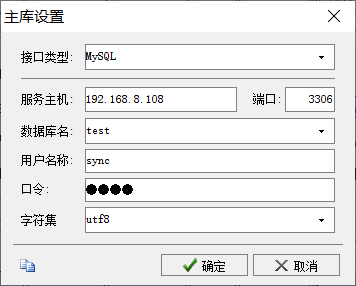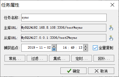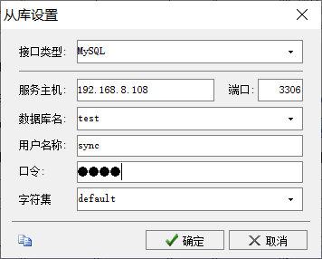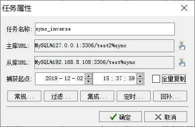 选择工具栏[新建]按钮,在任务属性对话框中依次设置主库及从库连接参数。