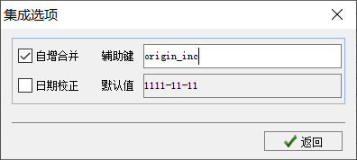 如果自增值在复制时由目标库计算产生,则选择[集成]按钮,在[集成选项]对话框设置辅助列。