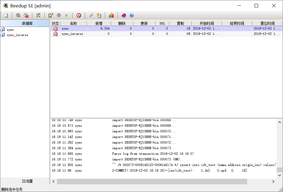 对于主从库双向同步,需要在主从库单独建立同步用户,该用户仅用于Beedup连接数据库,不可用于其它场景。