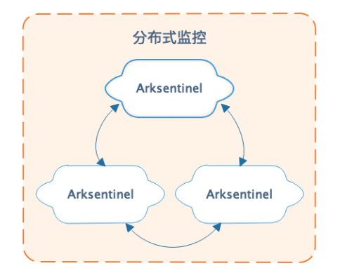 Arksentinel 是一个分布式监控哨兵集群,如下图所示,可以监控整个数据库集群的运行状况,实现系统监控、故障发现、故障自切换等功能。