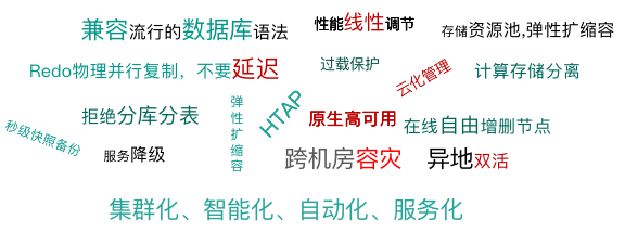 利用分布式存储系统的优势,可以动态增删计算节点和存储节点以实现弹性扩缩容功能,底层的数据分布式存储彻底解决了单机存储需要分库分表的问题。