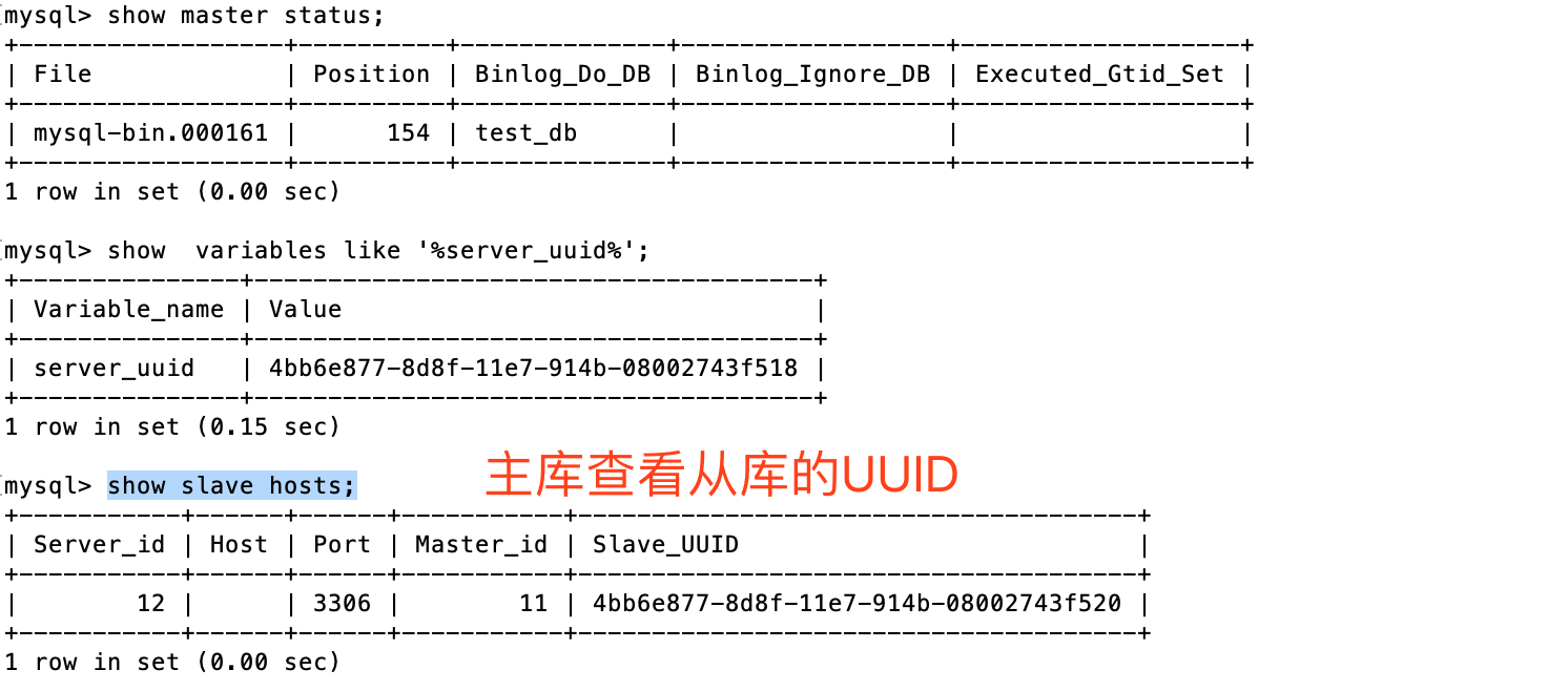 1.主库端查看从库的uuid
