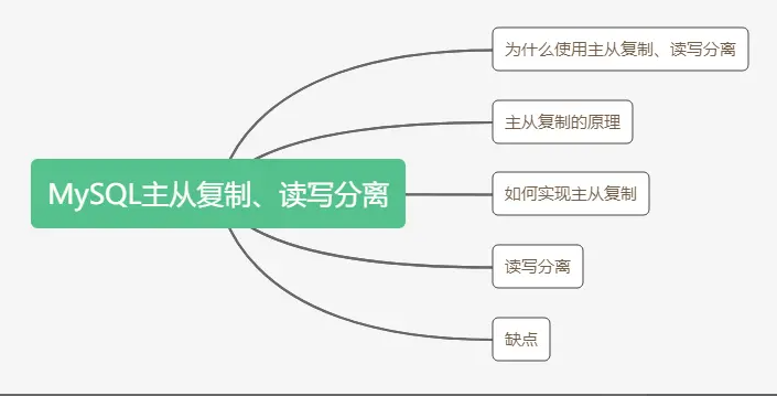 以上就是爱撒娇苗条最近收集整理的关于详细讲解mysql 主从复制原理思维导图前言为什么使用主从复制、读写分离主从复制的原理如何实现主从复制读写分离缺点的全部内容,更多相关详细讲解mysql内容请搜索靠谱客的其他文章。