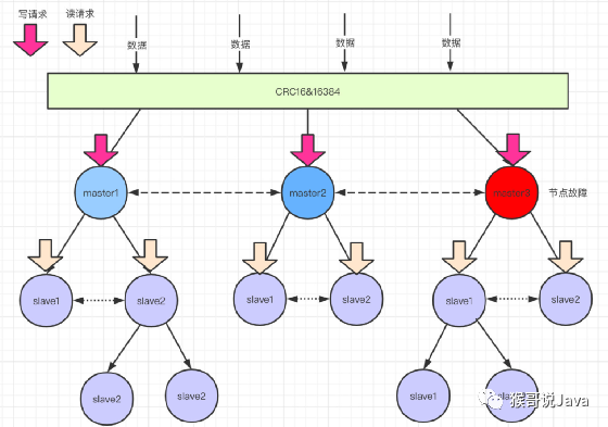 优点:数据按slot来分散存储,访问任何一个master节点都可以获取任何分片上面的数据,任何一个master节点都可以做扩容或者新增master节点的时候,数据会自动分片同步迁移(redis集群的重新分片由redis内部的redis-trib负责执行),服务器不需要下线。如果每个master使用了主从模式,那么当master发生故障的时候,下面的slave们会选举一个新的master