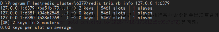 执行完成后通过redis-trib.rb info any_cluster_node_ip:port